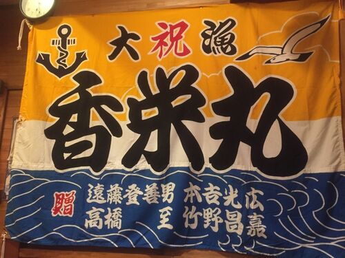 こんばんは。地域おこし協力隊のはやとです。 今日、ひさびさに島の居酒屋「香栄丸」で飲んできました。 私の一番のおすすめの居酒屋です。 今回は、写真を通してその魅力を伝えたいと思います! (写真1: 店内) (写真2: 店内奥に掲げられた大漁旗) (写…